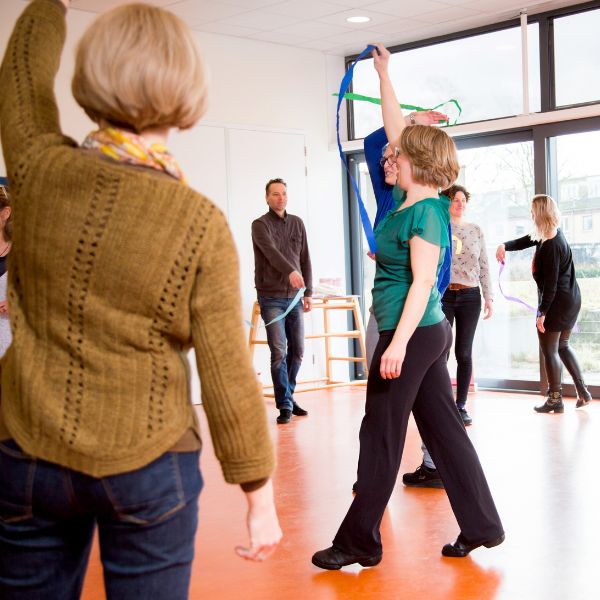 Onze bijscholing is actief, inspirerend en direct toepasbaar. Je gaat niet alleen bewegen en zingen, maar ook analyseren, kijken, reflecteren én voelen wat het met je doet. Je leert hoe je beweging koppelt aan taal, rekenen en thema’s uit je klas. Je bladert door boeken, probeert materialen uit en leert creatief kijken naar eenvoudige oefeningen die rijk zijn aan leerinhoud.